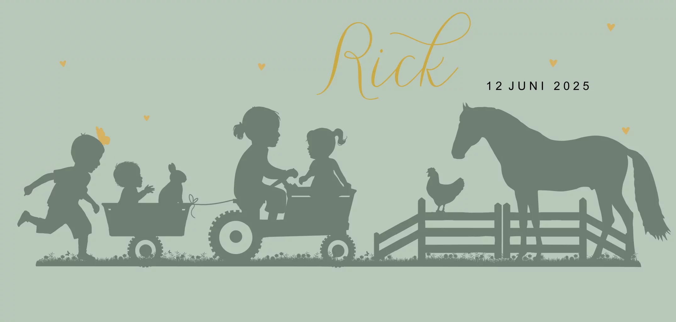 Geboortekaartje jongen 4e kindje met tractor en paard