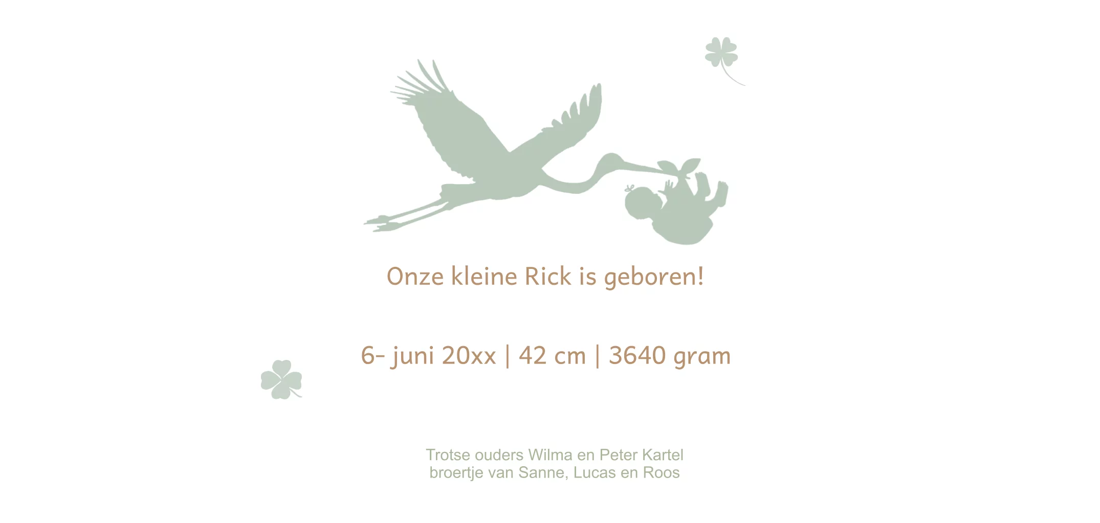 Geboortekaart jongen 4e kindje met tractor en paard in de kleur groen. De kleuren zijn naar wens aan te passen en ook de samenstelling van de broers en zussen. Neem hiervoor contact op, wij passen dit gratis en kosteloos aan. (20967)