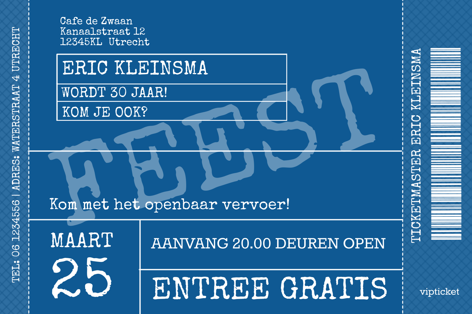 Leuke grappige uitnodiging vip ticket voor feest met streepjescode. (2451)