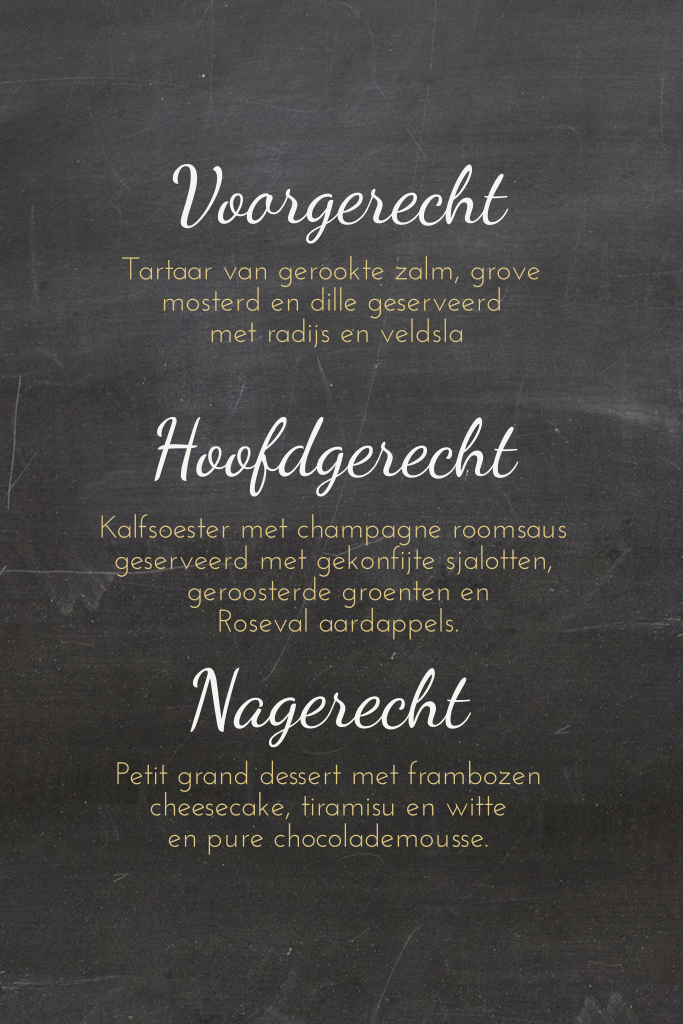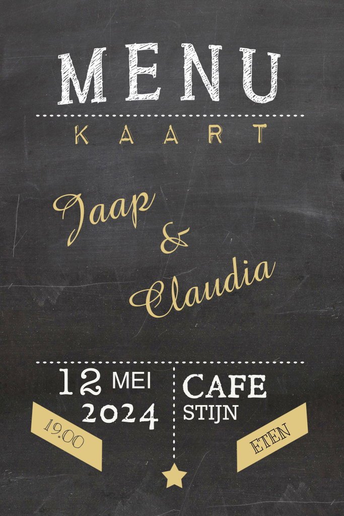 Menukaart voor een feestje met goudkleurige tinten. (6926)