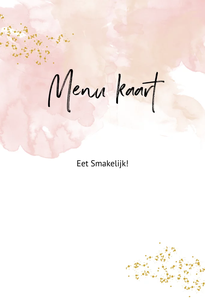 Menu kaart met waterverf roze en goud-look glitter. (8230)