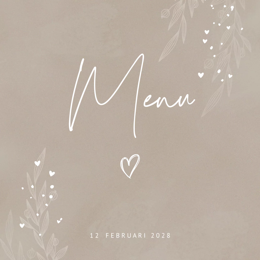 Menu kaart zandtint met goudfolie takjes en hartjes. (22952)