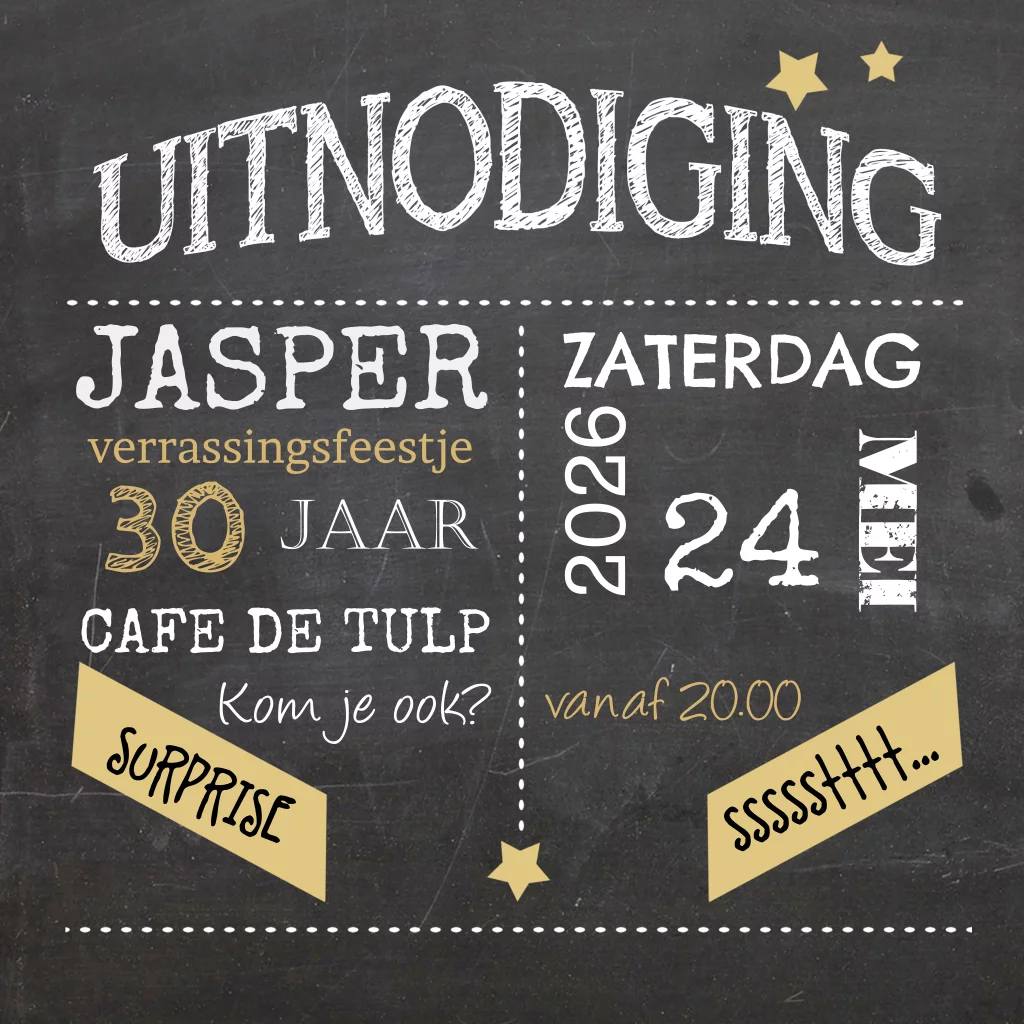 Moderne hippe uitnodigingskaart voor een verrassingsfeestje