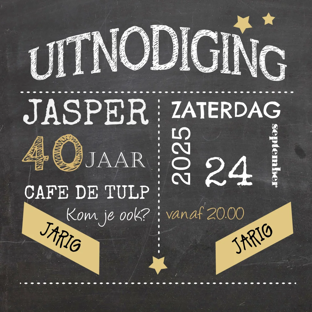 Stoere uitnodiging 40 jaar feestje in de kleuren goud zwart wit voor een 40 jaar verjaardag. (1986)