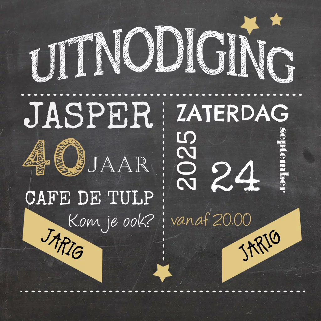 Stoere uitnodigingskaart zwart wit voor een 40 jaar verjaardag. (1986)