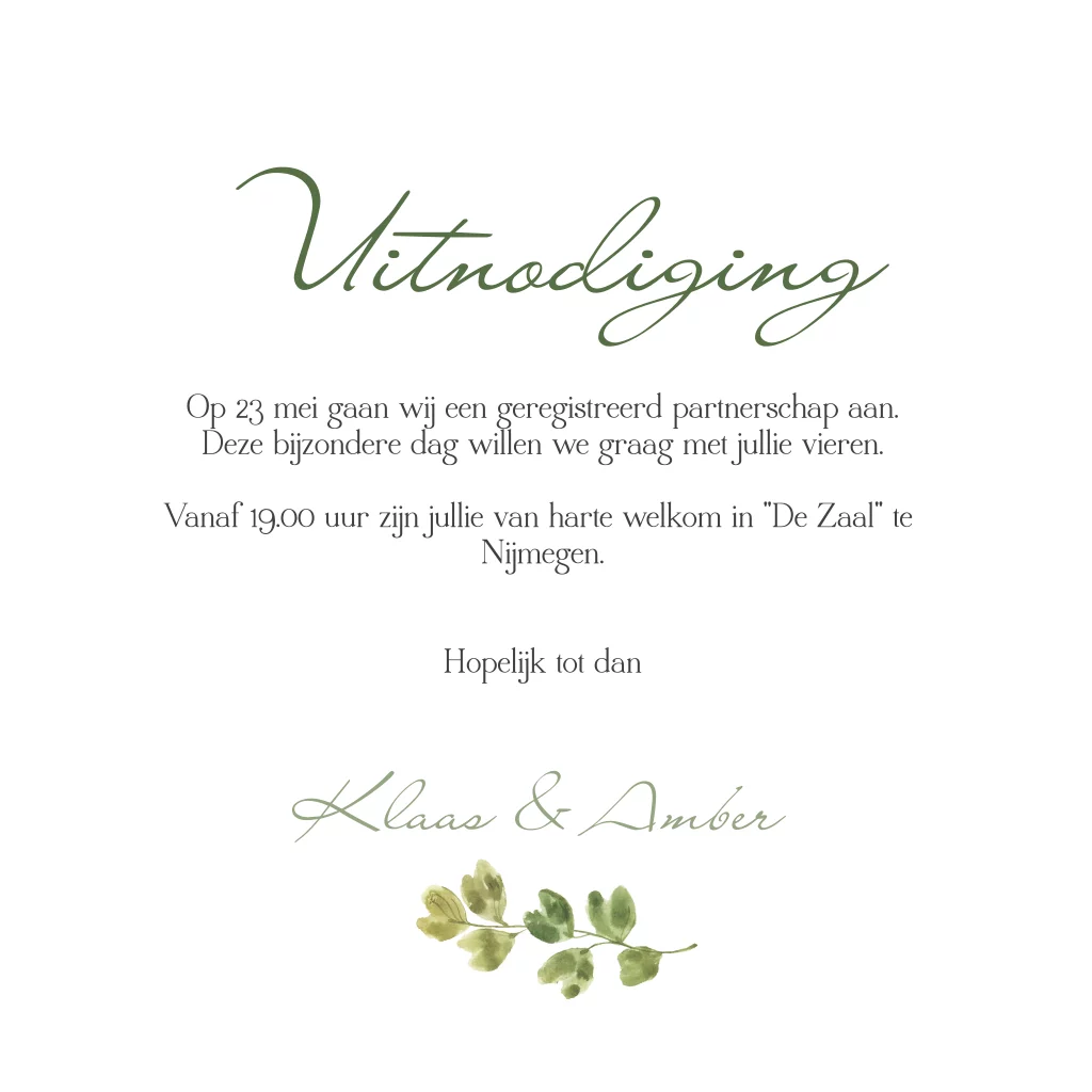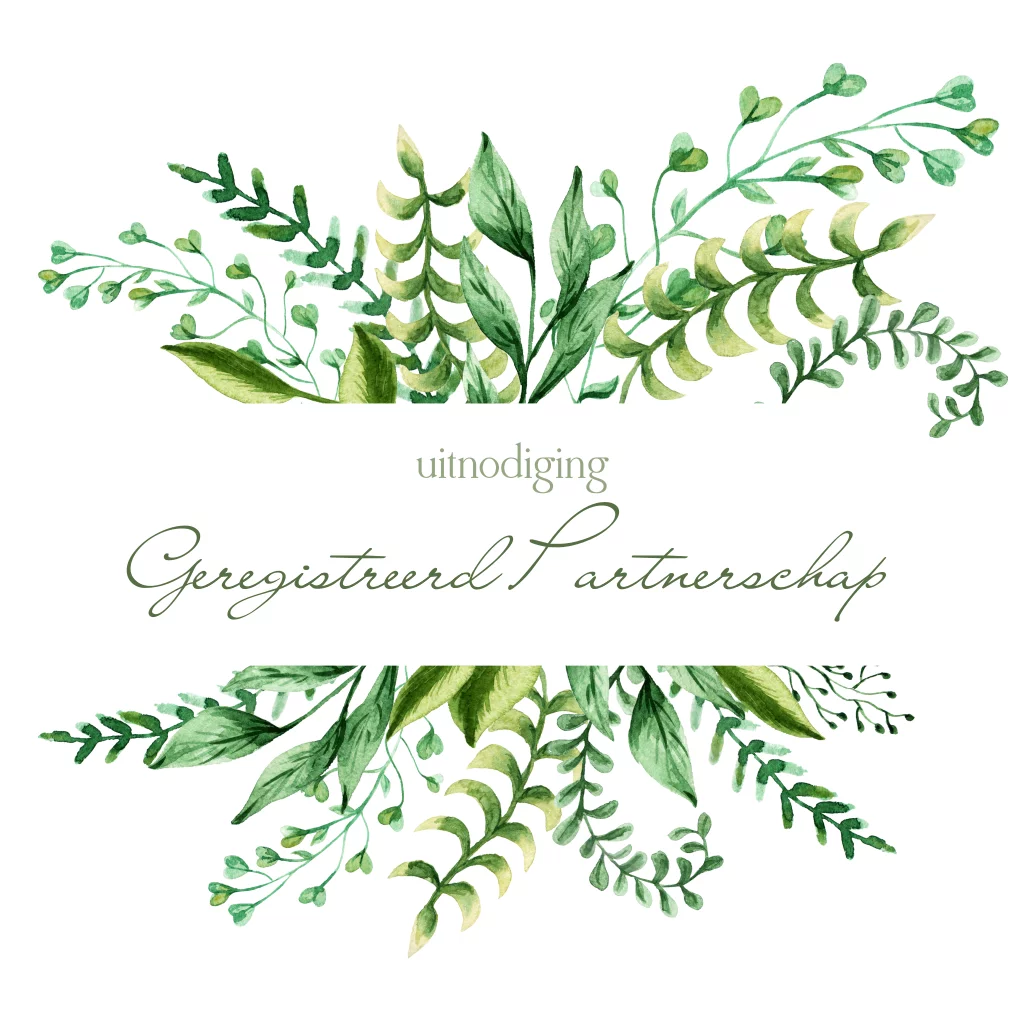 Moderne uitnodiging geregistreerd partnerschap met takjes. (7698)