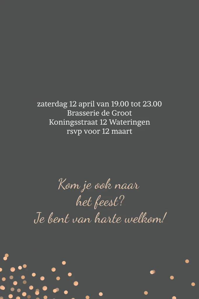 Pensioen feest uitnodigingskaart koper tinten confetti. (3799)