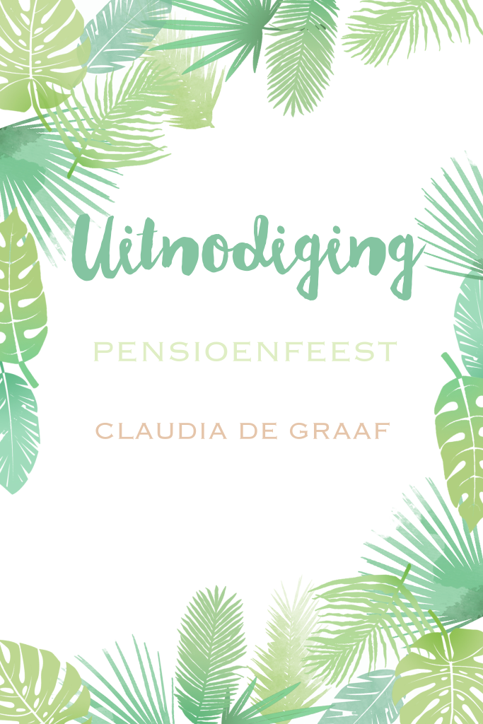 Uitnodiging pensioenfeest met mooie bladeren in groene tinten, super hip! (3874)
