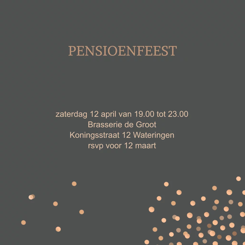 Uitnodigingen pensioenfeest kaart koper tinten confetti