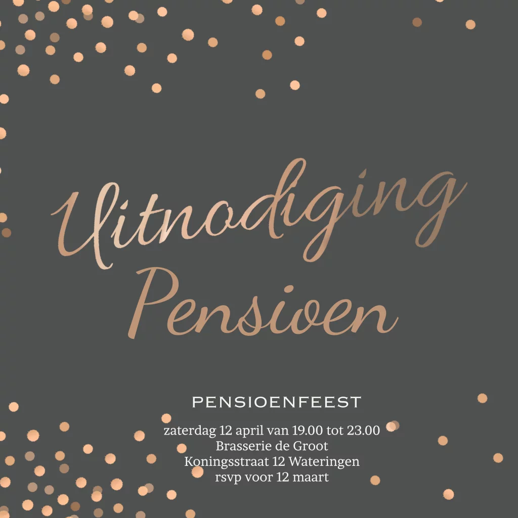 Pensioen uitnodigingskaart koper tinten confetti. (3800)