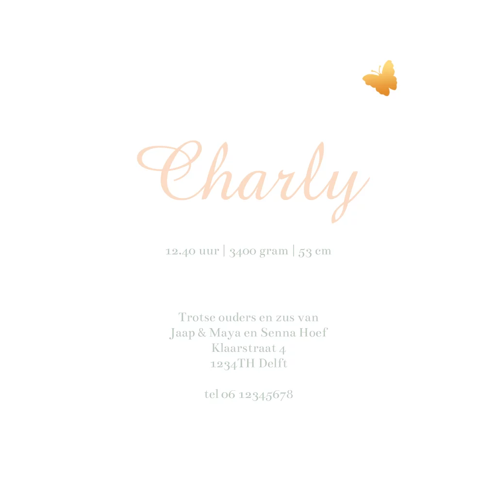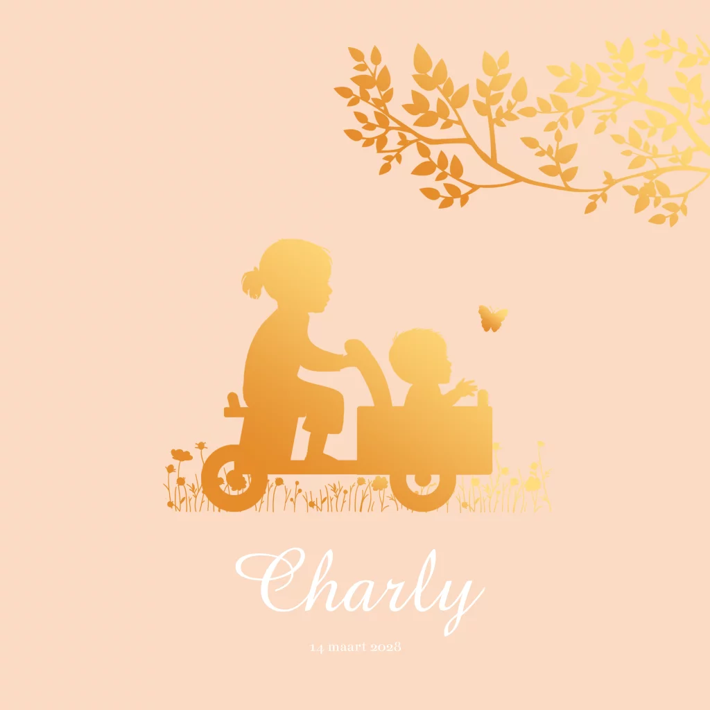 Geboortekaartje 2e kindje met een bakfiets koperlook met een grote zus op het zadel van de fiets. (8789)