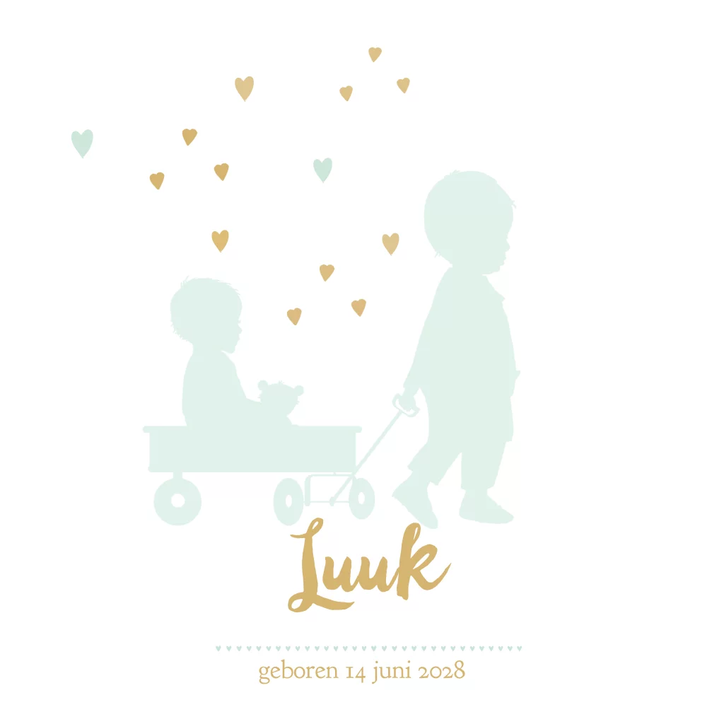 2e kindje geboortekaartjes voor een jongen met een grote broer voor een met kar en hartjes. (6750)