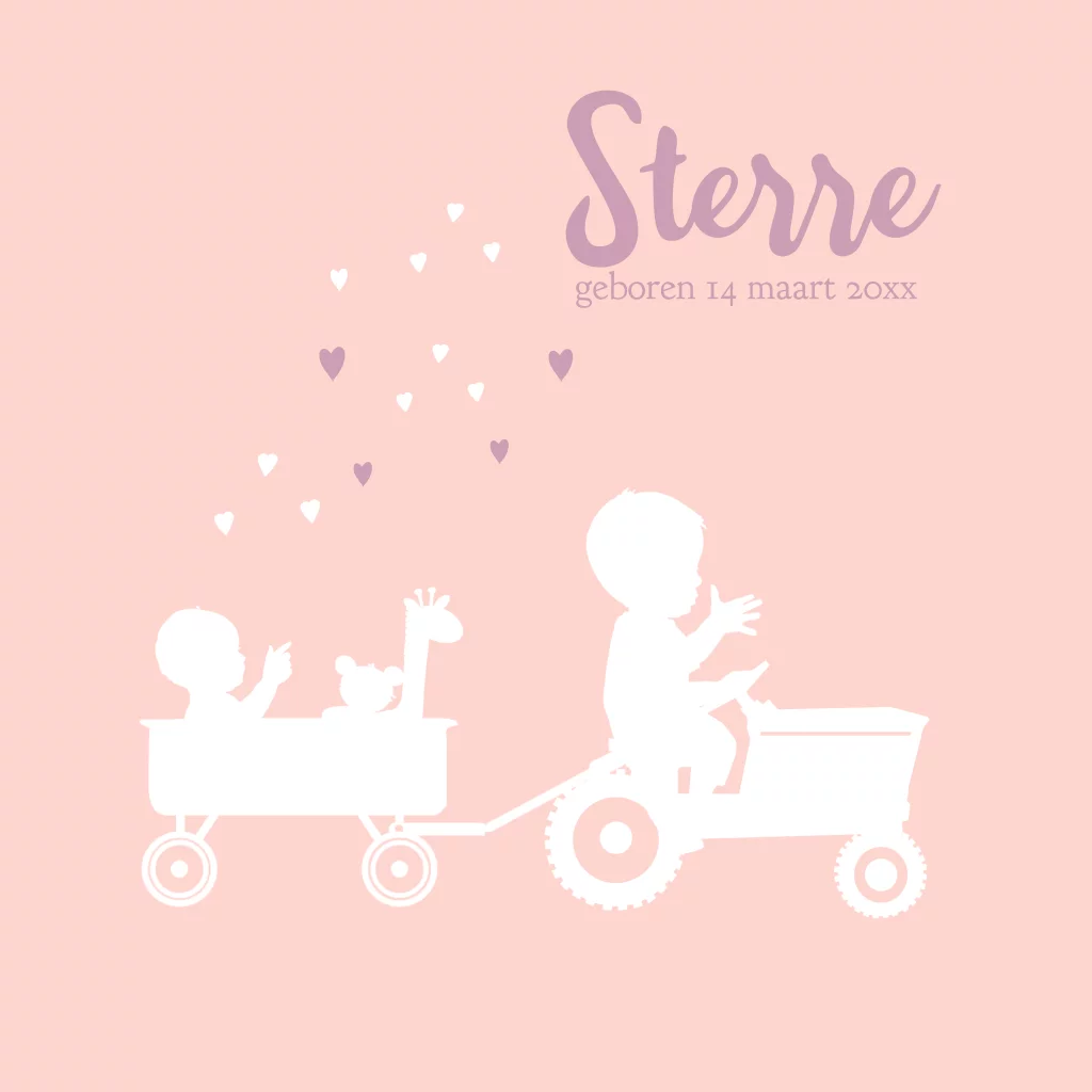 2de kindje geboortekaartje zusje en broer in tractor baby