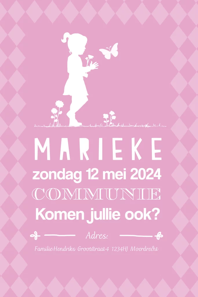 Silhouetten communie kaartje meisje met vlinder