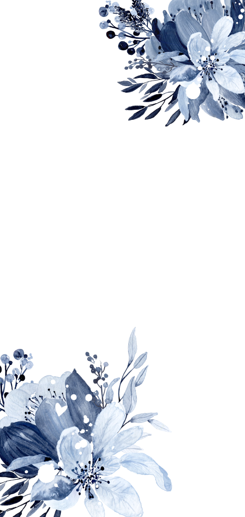Stijlvolle trendy menukaart bladeren delftsblauw goudfolie. (20794)