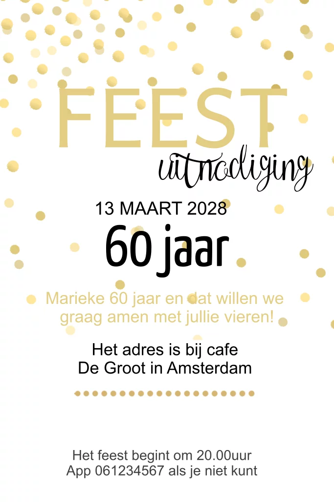 Stijlvolle uitnodiging met gouden confetti 60 jaar