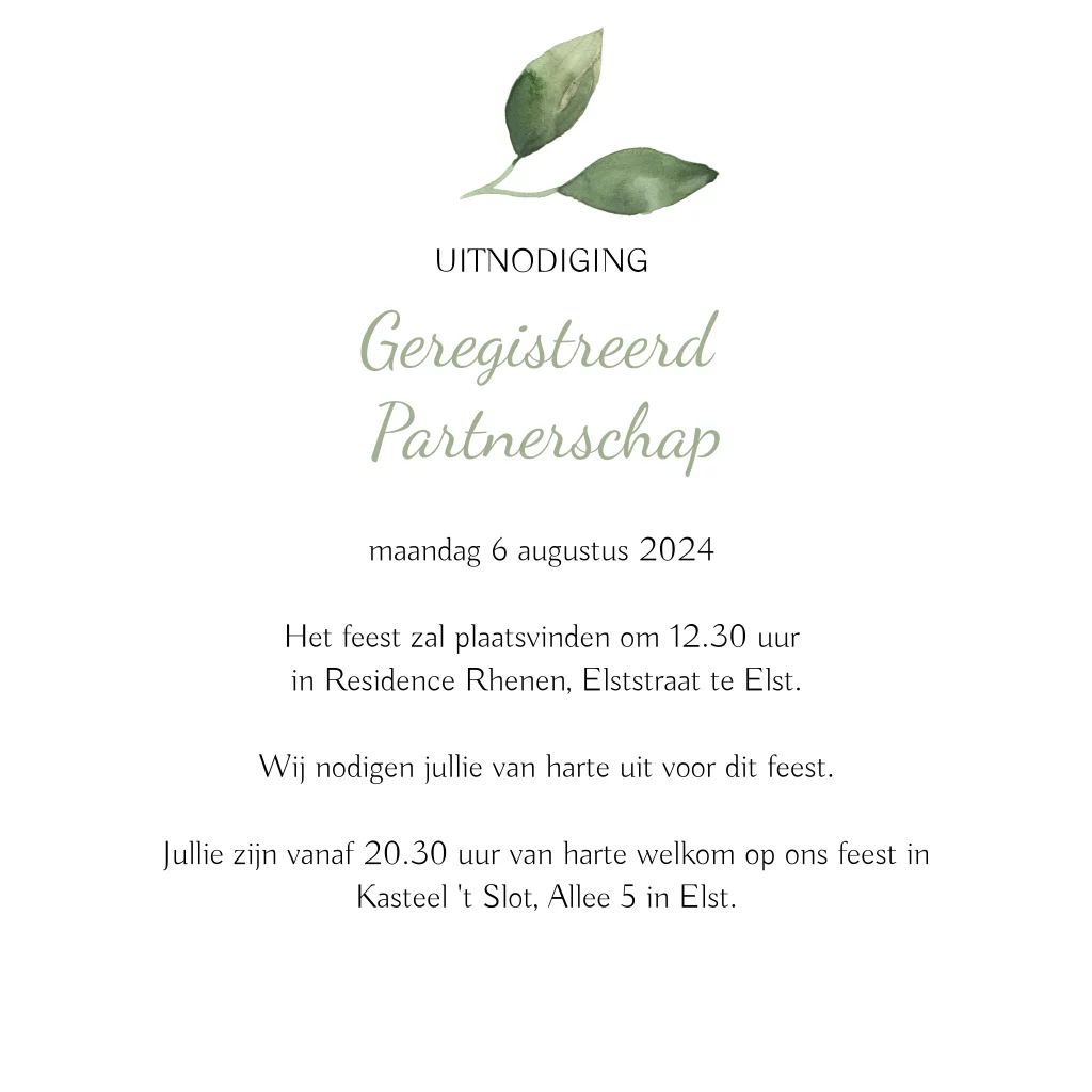 Stijlvolle uitnodiging Geregistreerd partnerschap bladeren. (8112)