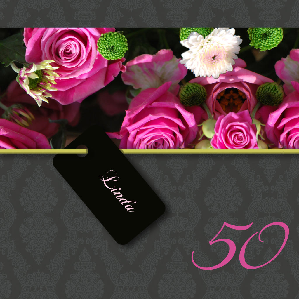 Stijlvolle verjaardagskaart verjaardag feest. Roze bloemen op achtergrond. (510)