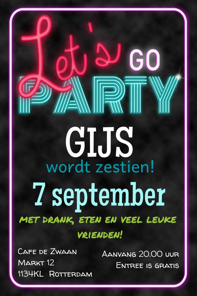 Hippe uitnodiging sweet 16 in neon met leuke kleuren