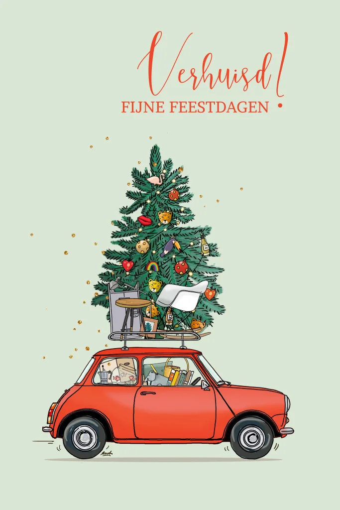 Trendy kerst verhuiskaart in kerstsfeer met mini. (21705)