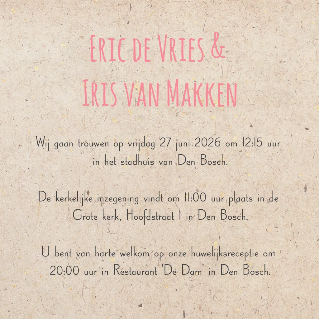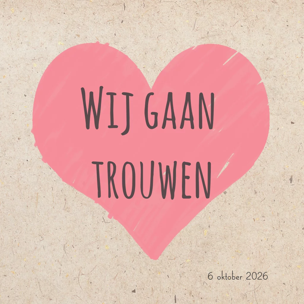 Trouwkaart met roze kleur hart. Kleur naar keuze aan te passen. (782)