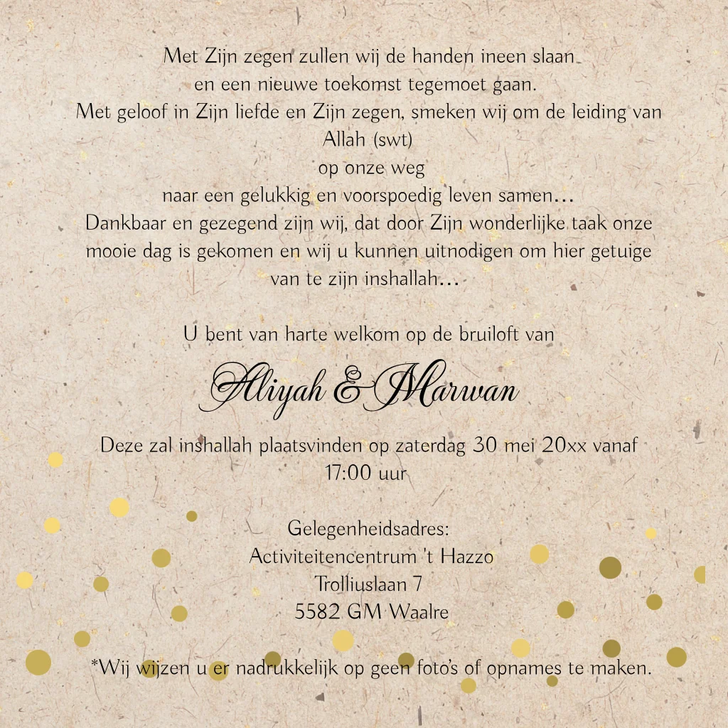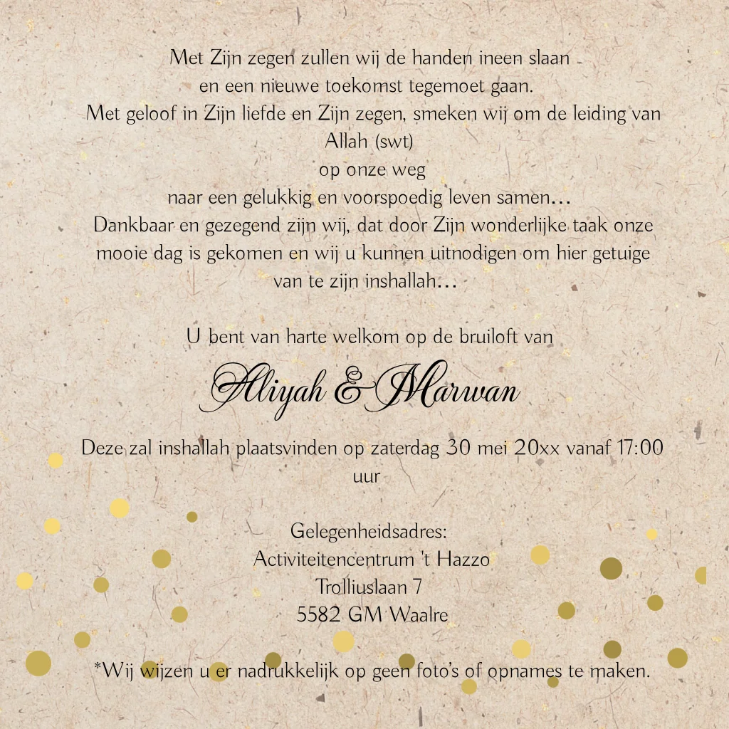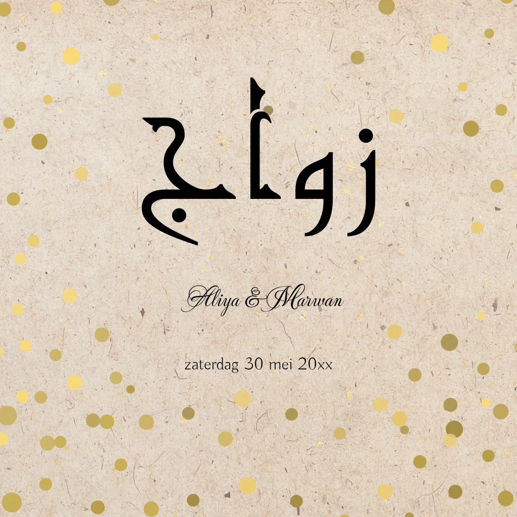 Trendy uitnodiging huwelijk met gouden bolletjes arabisch islamitisch