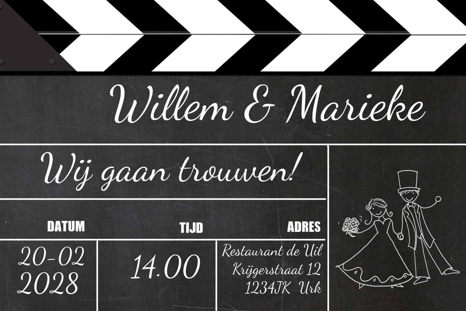 Trouwkaart met filmklapper scene bord