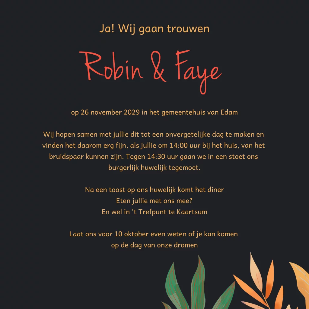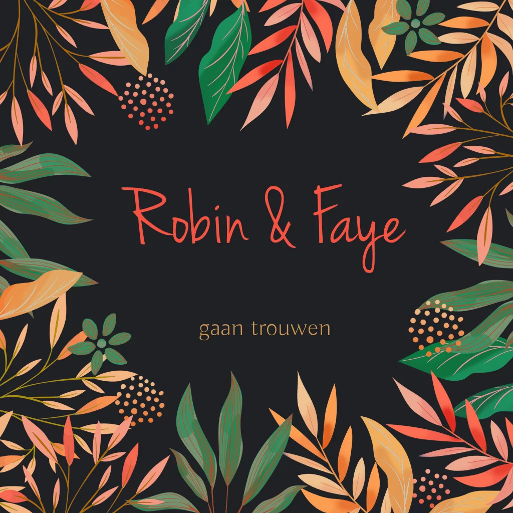 Trouwkaart met bladeren in herfstkleuren