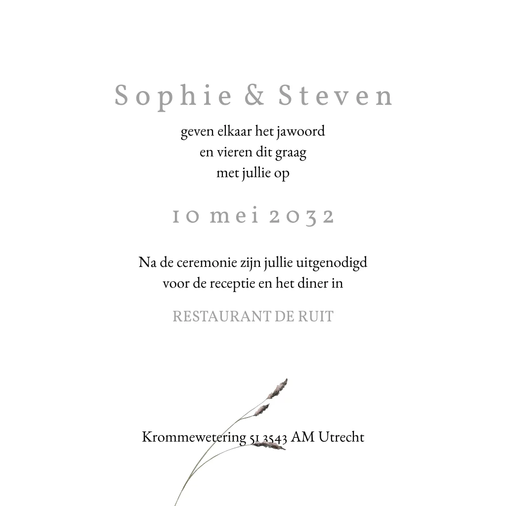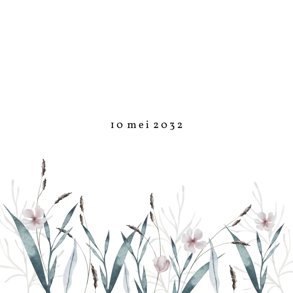 Trouwkaart takjes met mooie bloemen. De namen op de voorkant staan in holografische foliedruk wat zal zorgen voor een mooie schittering op de kaart. (24422)