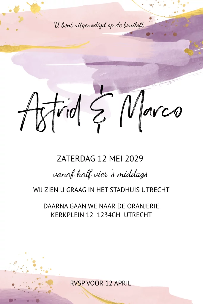 Trouwkaart waterverf waterverf paars roze lila