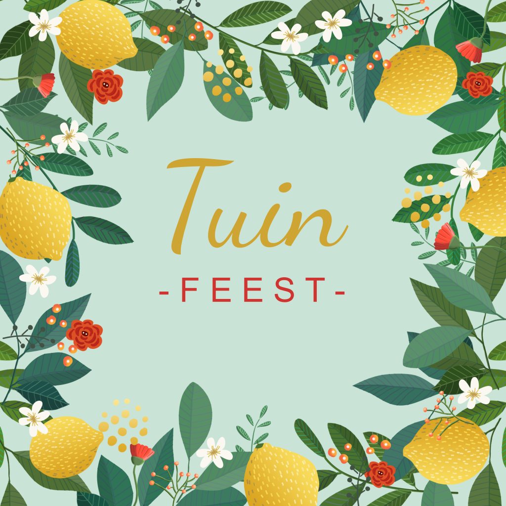 Uitnodiging voor een tuinfeest met citroenen bladeren. (8591)