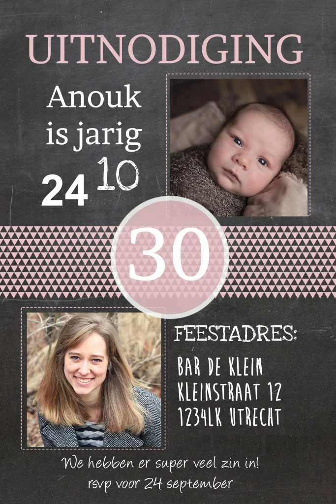 Uitnodiging 30 jaar krijtbord strak met aanpasbare tekst