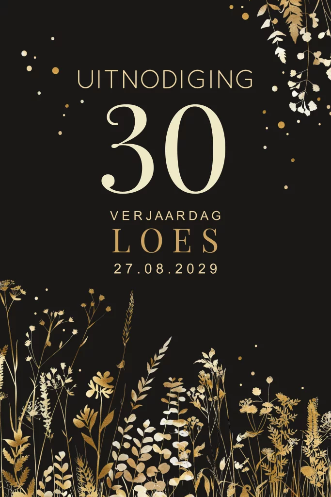 Uitnodiging 30 jaar verjaardag feestelijk met goudlook takjes
