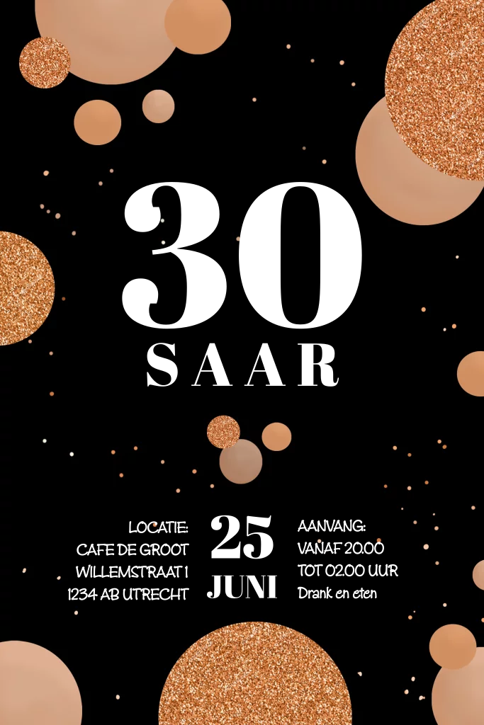 Uitnodiging 30 jaar verjaardag met hippe confetti