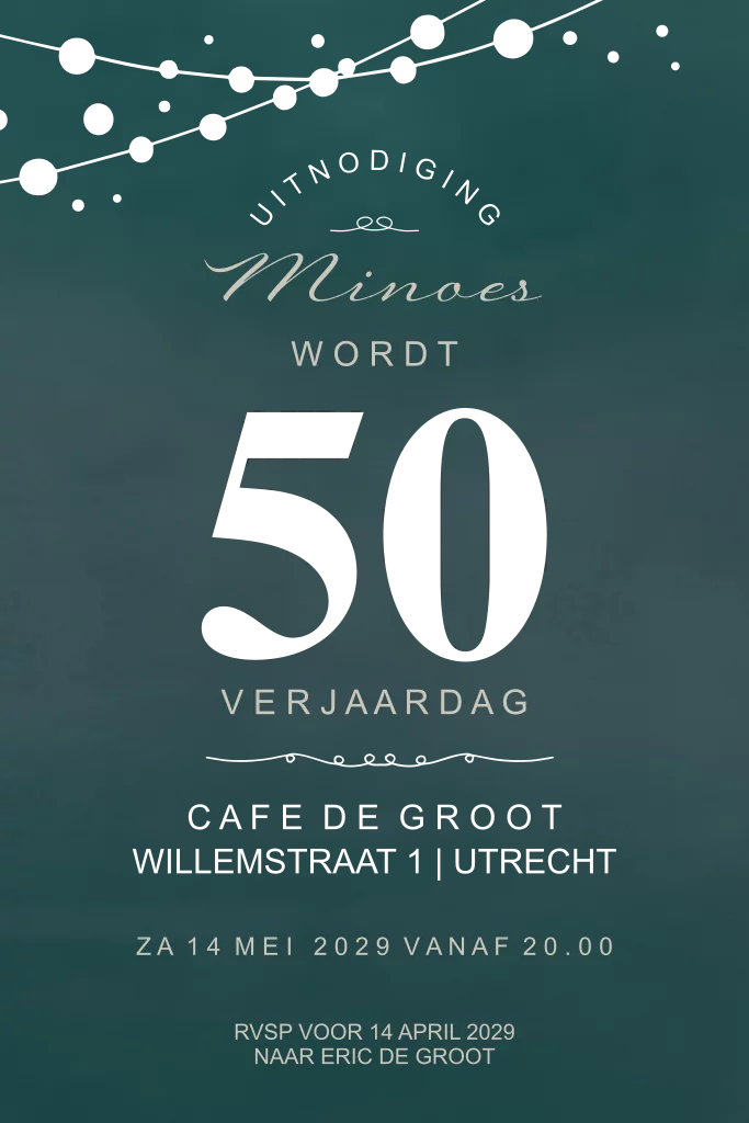 Moderne uitnodiging voor een verjaardag 50 jaar met bolletjes slinger. (24115)