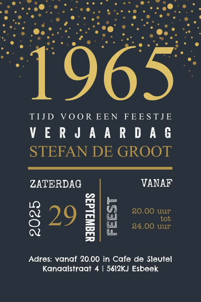 Uitnodiging 60 jaar verjaardag man staand geboortejaar 1965 geboren en 60 jaar oud geworden. (22116)