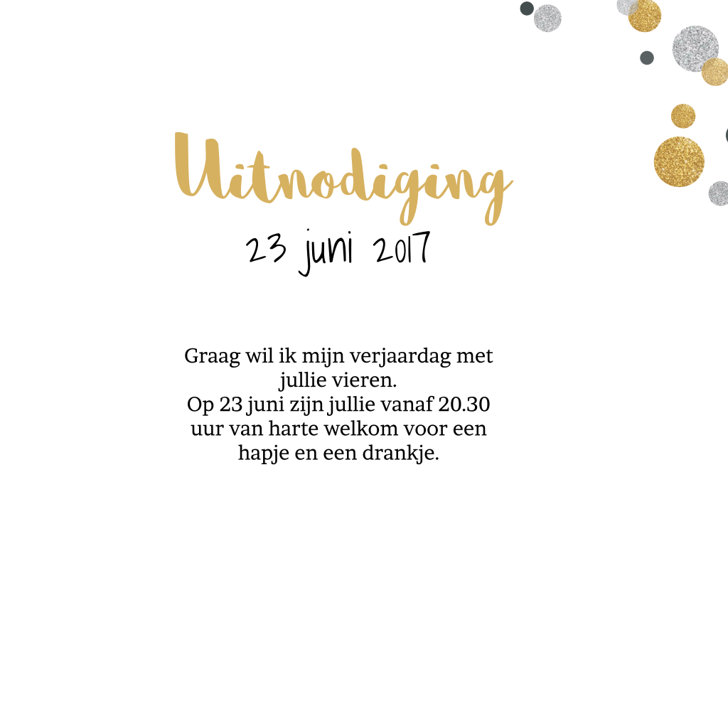Uitnodiging dubbel feest met confetti in zilver en goudlook en kraft, teksten zijn geheel aanpasbaar. (5297)
