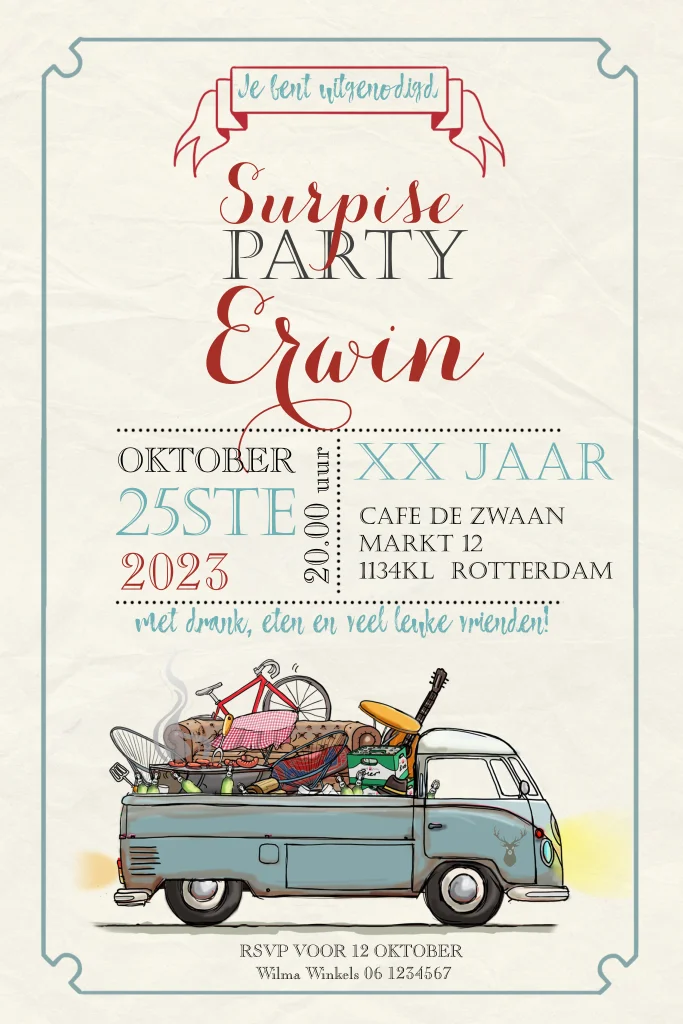 Uitnodiging surprise feestje voor een man met stoere auto. (5485)