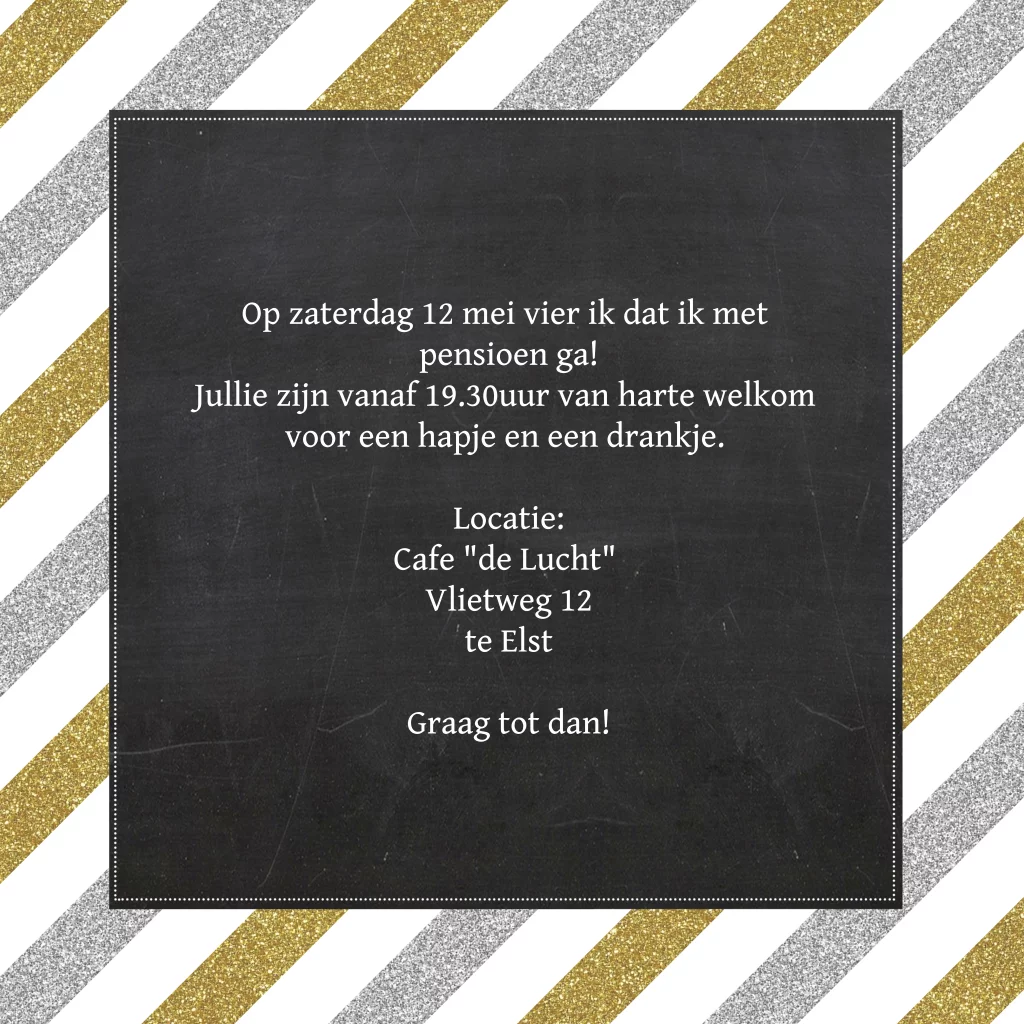 Uitnodiging pensioenfeest met goud en zilver streep