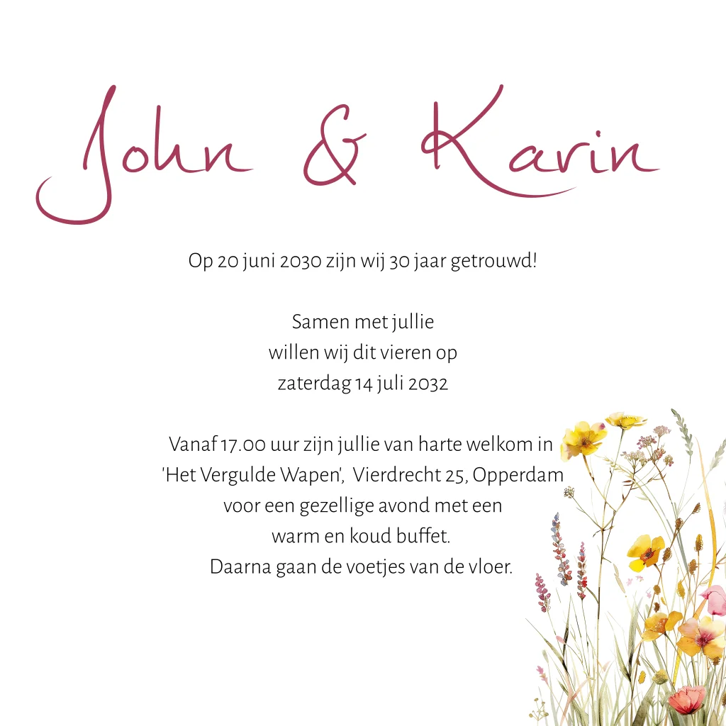Uitnodiging jubileum 60 jaar getrouwd veldbloemen