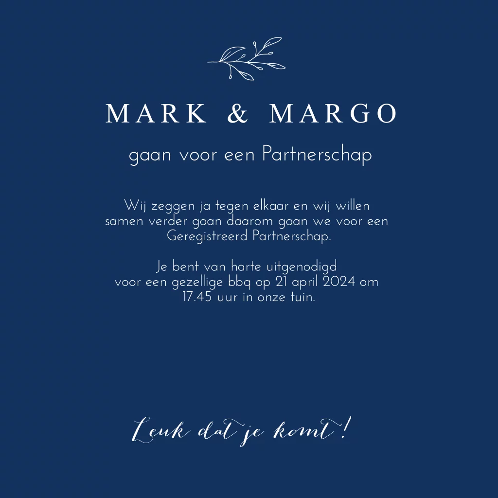 Uitnodiging Partnerschap met foto pantone blue kleur