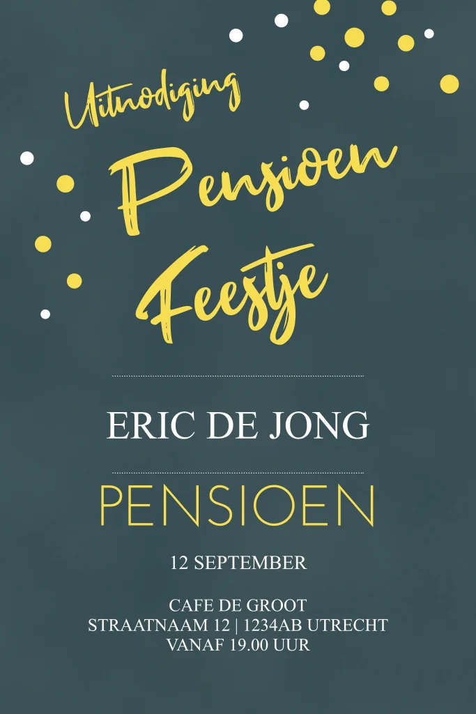 Uitnodiging pensioen feest ronde kanten en velvet groen