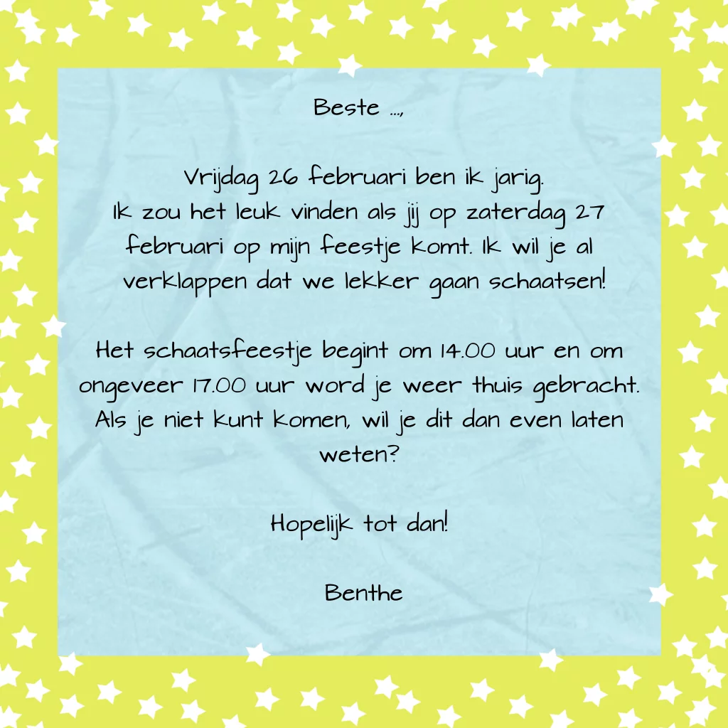 Uitnodiging schaatsfeestje om te schaatsen kinderfeestje met getekende benen met mooie schaatsen. (836)