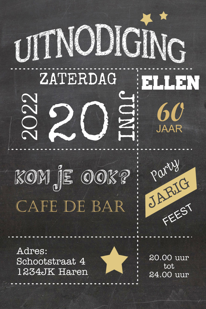 Uitnodiging 60e verjaardag schoolbord met typografie. (1540)