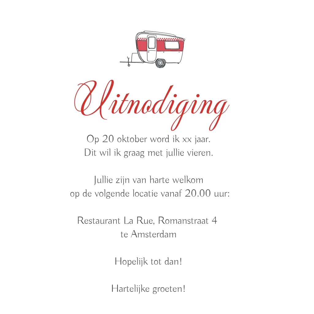 Uitnodiging verjaardag op camping met retro caravan kaarten