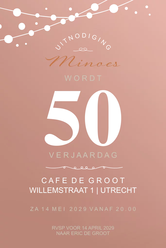 Mooie uitnodiging voor een 50e verjaardagsfeest met slingers en confetti. (24109)
