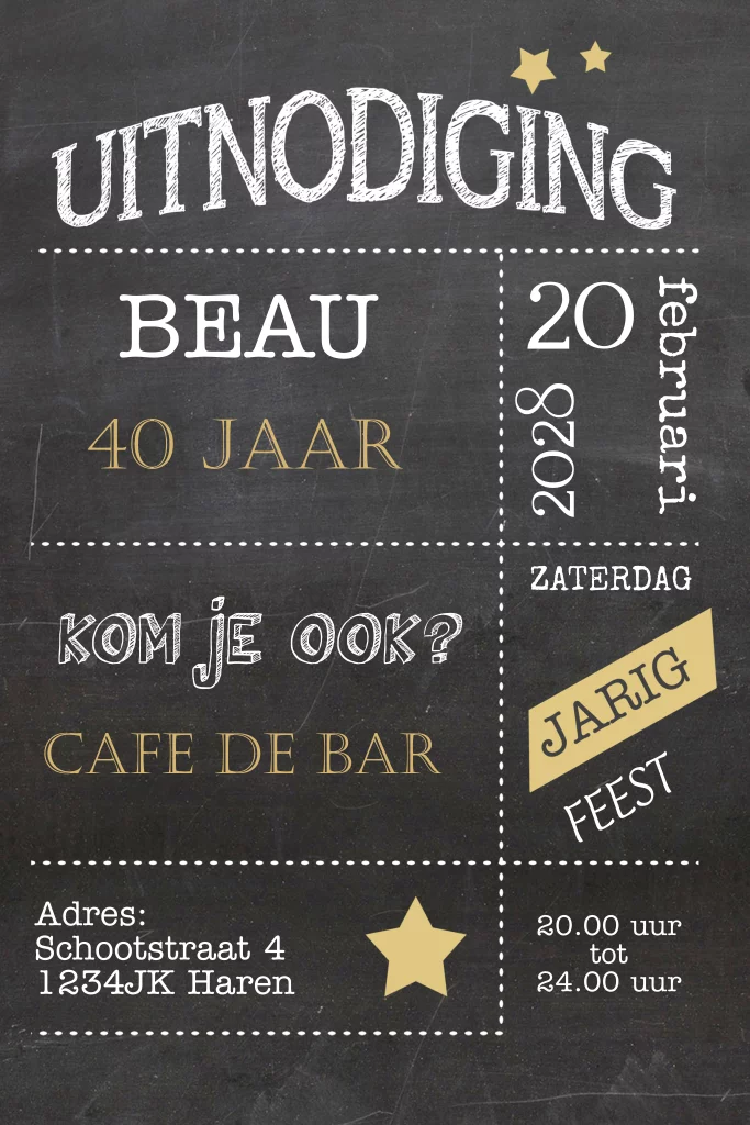 Uitnodiging verjaardag 40 jaar schoolbord met typografie