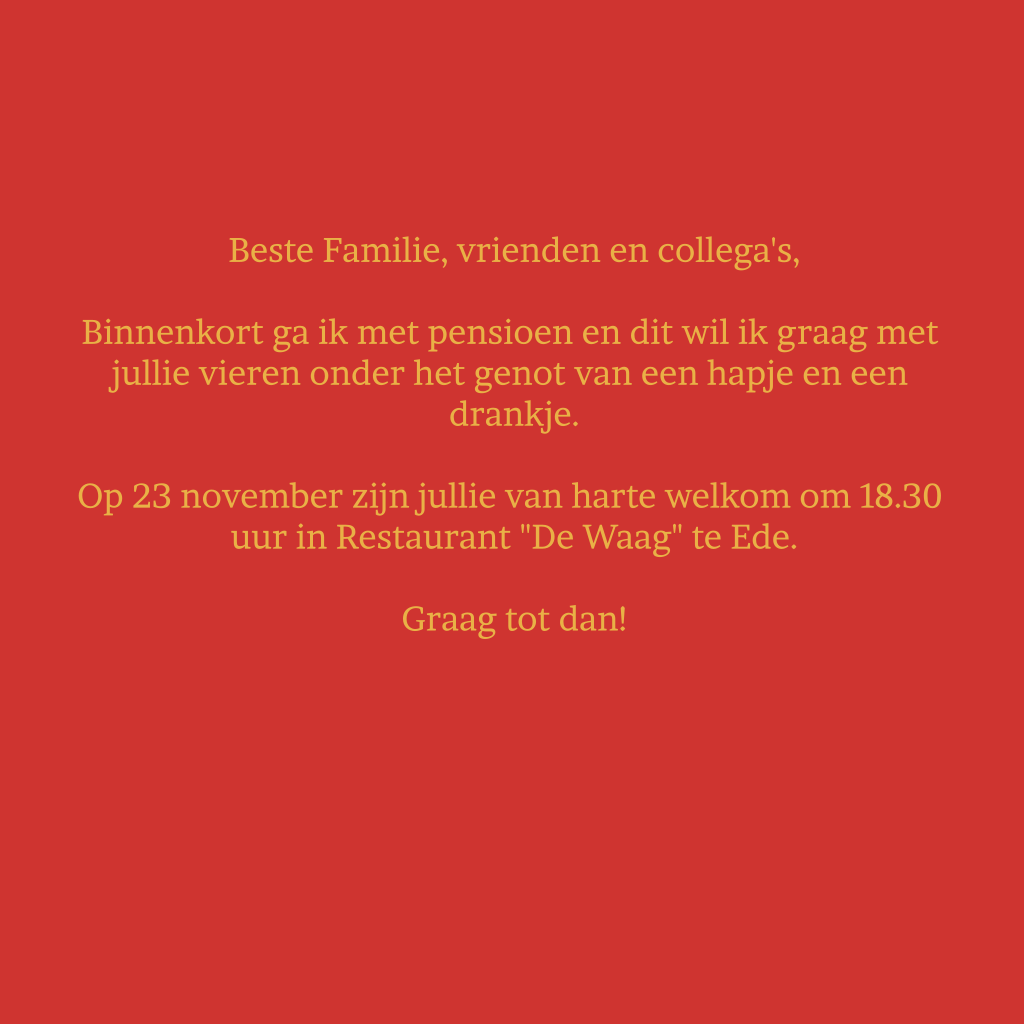 Uitnodigingskaart pensioen met oranje rozen. (840)