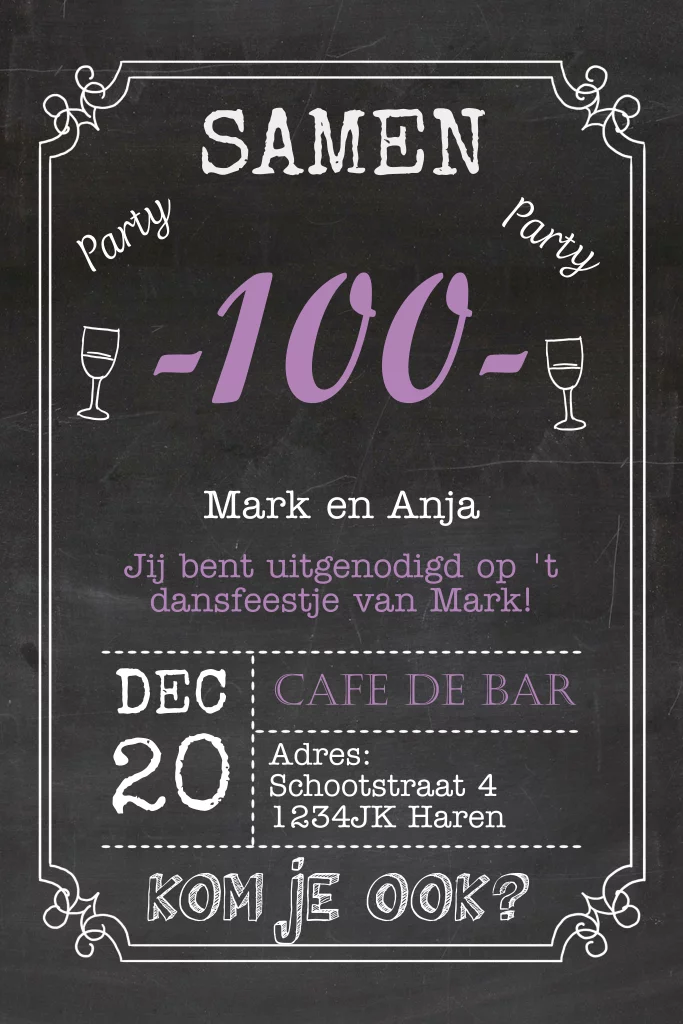 Uitnodigingskaart samen 100 jaar krijtbord met typografie