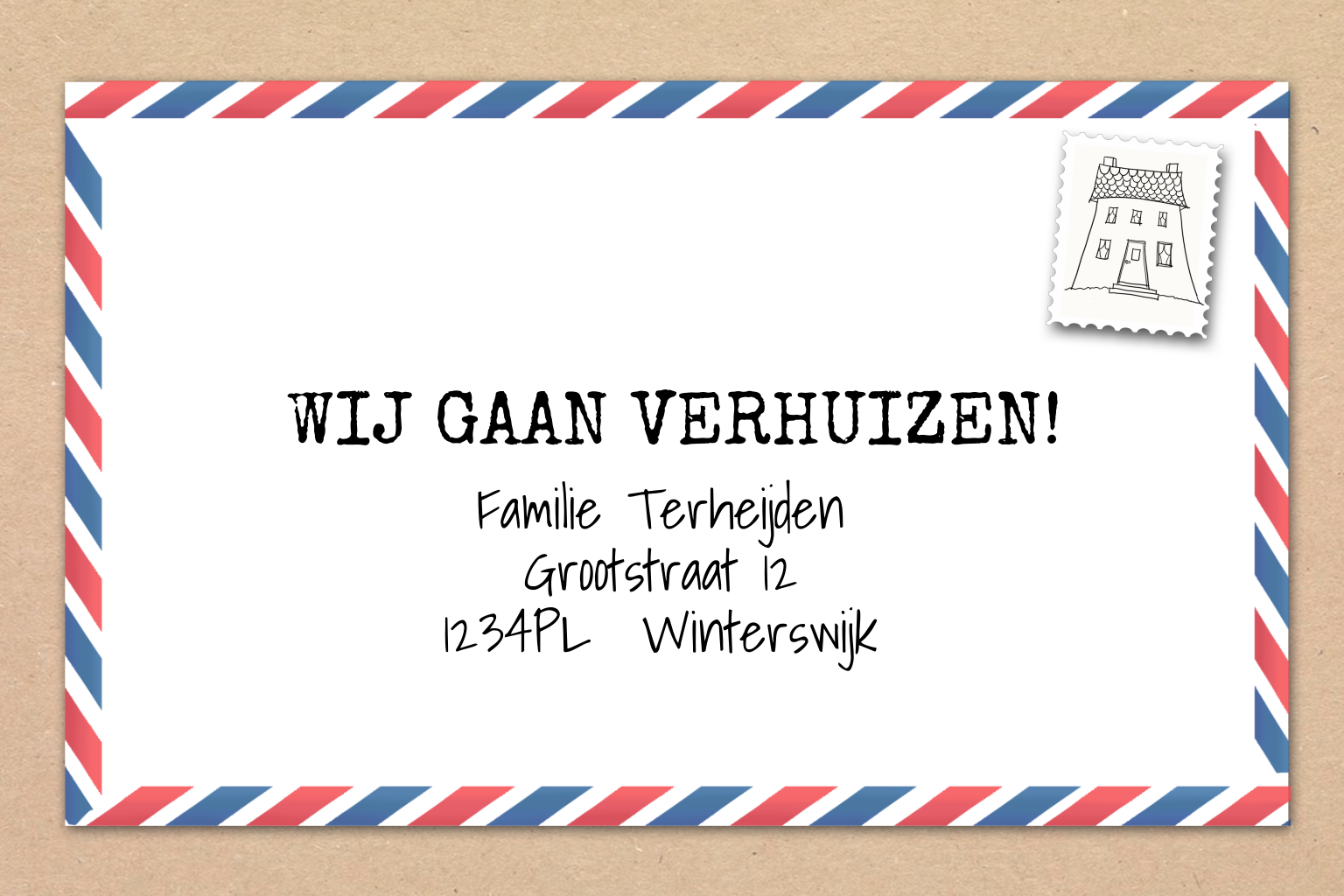 Trendy verhuis postkaart met tekst en postzegel. (2159)